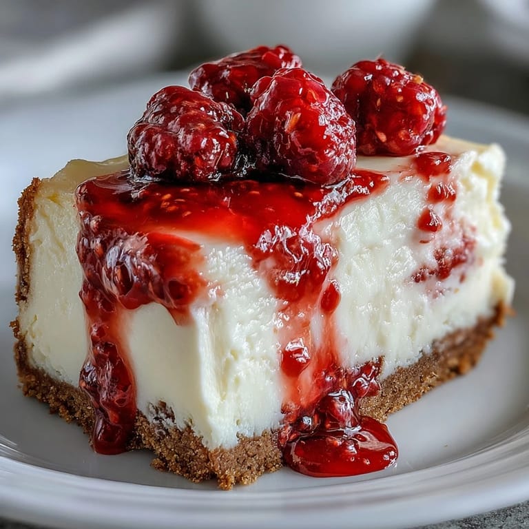 If your cheesecake cracks, don't panic, a generous topping of raspberry sauce or fresh berries covers it beautifully. The slight jiggle in the center when you remove it from the oven is your friend, it will firm up as it cools. I've learned that patience is the hardest part of this recipe, waiting for it to chill overnight feels impossible, but it's worth every second.